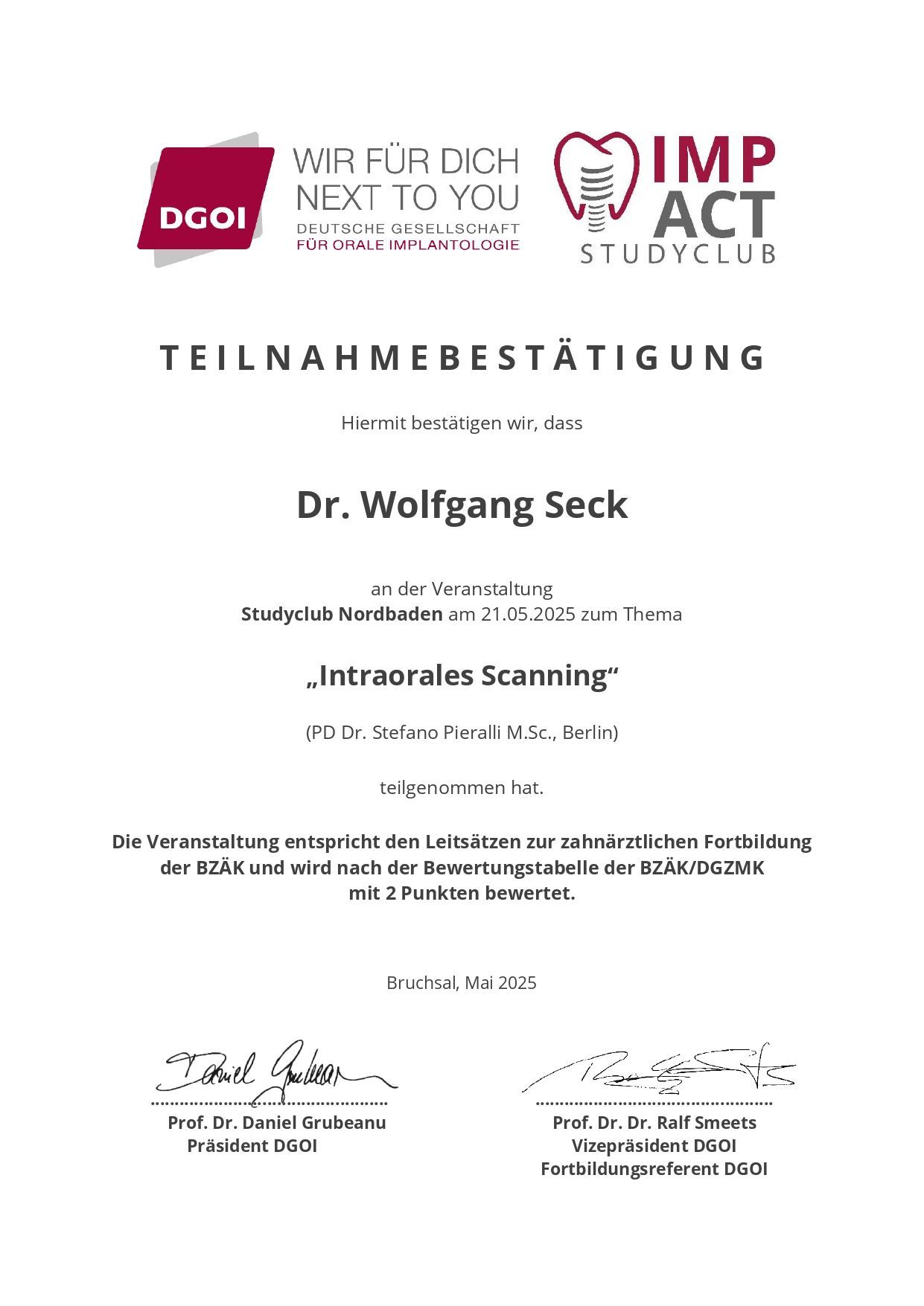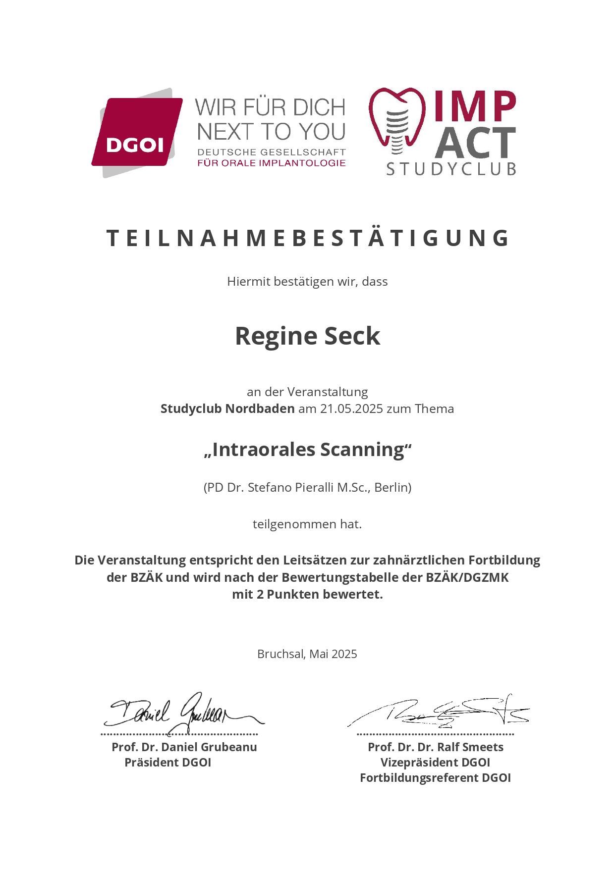 Regine und Dr. Wolfgang Seck sorgen auch in diesem Frühjahr dafür, dass sie auf dem aktuellsten Stand der Zahnmedizin bleiben. Seit der Eröffnung unserer Praxis haben wir uns mit der Anwendung des CEREC-Systems der Digitalisierung verschrieben. Die Entwicklung der Digitalisierung in der Zahnmedizin schreitet aber derart schnell voran, dass wir wieder eine Fortbildung besuchenswert fanden. Sie befasste sich mit der digitalen Abformung sowie den digitalen Prozessen in einer modernen Zahnarztpraxis.