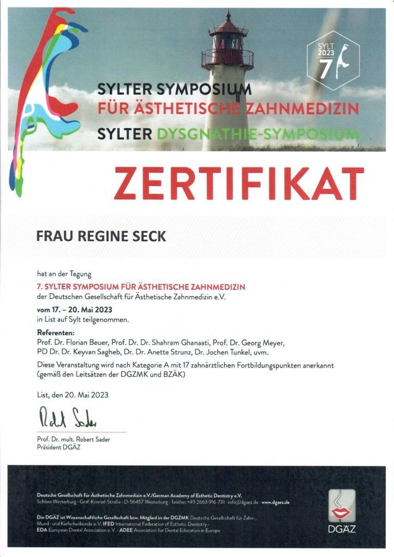 Danach gingen die Zahnärzte der Praxis Seck nach Sylt, um gleich zwei Fortbildungen zu besuchen: Einmal hörten sie Vorträge zu den Themen Teambildung und Personalförderung auf dem Wirtschaftskongress der freien Zahnärzte zum anderen besuchten Sie den jährlichen Kongress für ästhetische Zahnmedizin. Dieser befasst sich mit Implantologie, Zahnchirurgie, Kronen, Brücken und Prothesen – und das alles unter dem Gesichtspunkt einer optimalen Ästhetik.